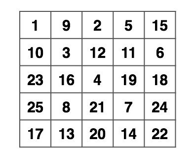- продвинутых на 25 квадратов ( в каждом располагаются числа от 1 до 25) (для разных таблиц индивидуальный вариант).