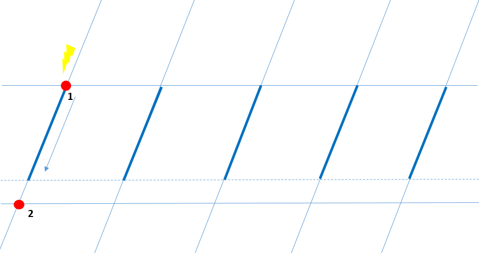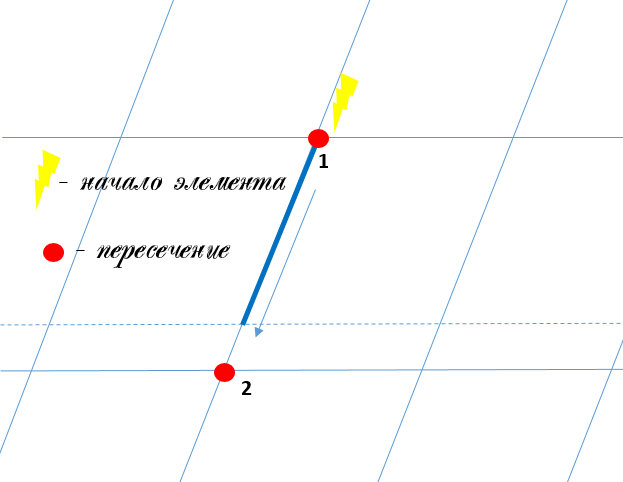 "Наклонная палочка из верхнего пересечения до улыбочки"